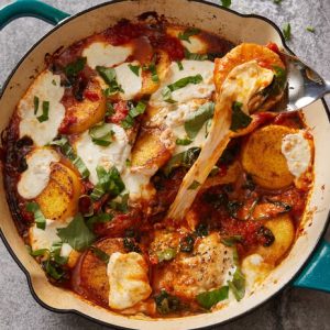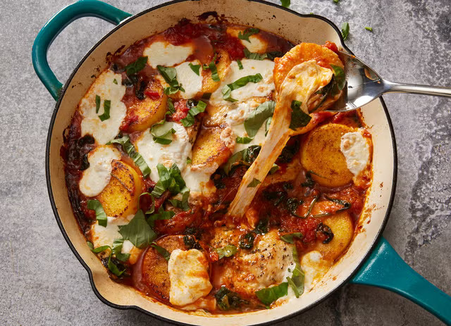 This Caprese Chicken & Polenta Bake is a comforting yet elegant dish that combines tender chicken, crispy polenta rounds, and a rich marinara sauce. Topped with gooey mozzarella and fresh basil, this recipe is perfect for a cozy family dinner or an impressive meal for guests.